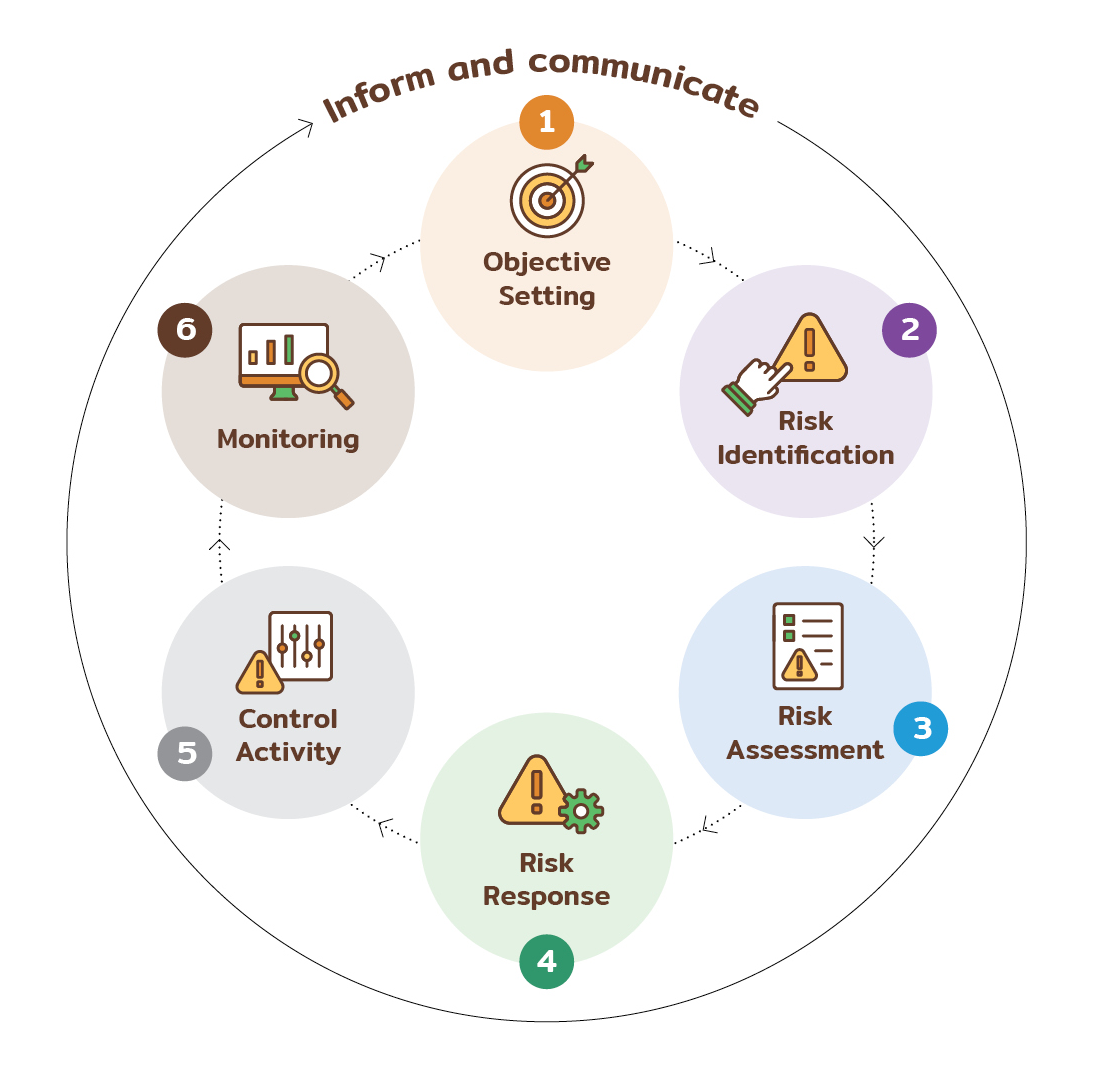 Mitr Phol has adopted the COSO Enterprise Risk Management Integrated Framework as a key tool for designing its risk management process. The Company emphasizes effective, transparent, and sustainability-aligned risk management practices. The Board of Directors has delegated the Risk Management Committee* to oversee the implementation of the Risk Management Policy and framework, monitor the overall risk management process, and ensure that key risks are managed within the defined risk appetite. The Risk Management Committee consists of 7 directors, including one independent director, Dr. Pichet Durongkaveroj. This composition is in accordance with the Risk Management Committee Charter established by the organization. (For more details regarding to Dr. Pichet Durongkaveroj, please visit website). The Risk Management Department is responsible for communicating the policy and recommendations from the Board and the Committee to relevant business units and coordinating corporate-wide implementation. It oversees risk management across six key risk areas: strategic, operational, digital and technology, financial, legal and regulatory compliance, and sustainability (ESG). The Department also reviews, monitors, and reports significant risks to the Risk Management Committee and the Board of Directors to ensure they are informed of the Company's risk management performance on an annual basis. The Risk Management Department reports directly to the Governance, Risk, and Compliance Division under the Corporate Sustainability Sub-Business Group, which operates independently from the core businesses.