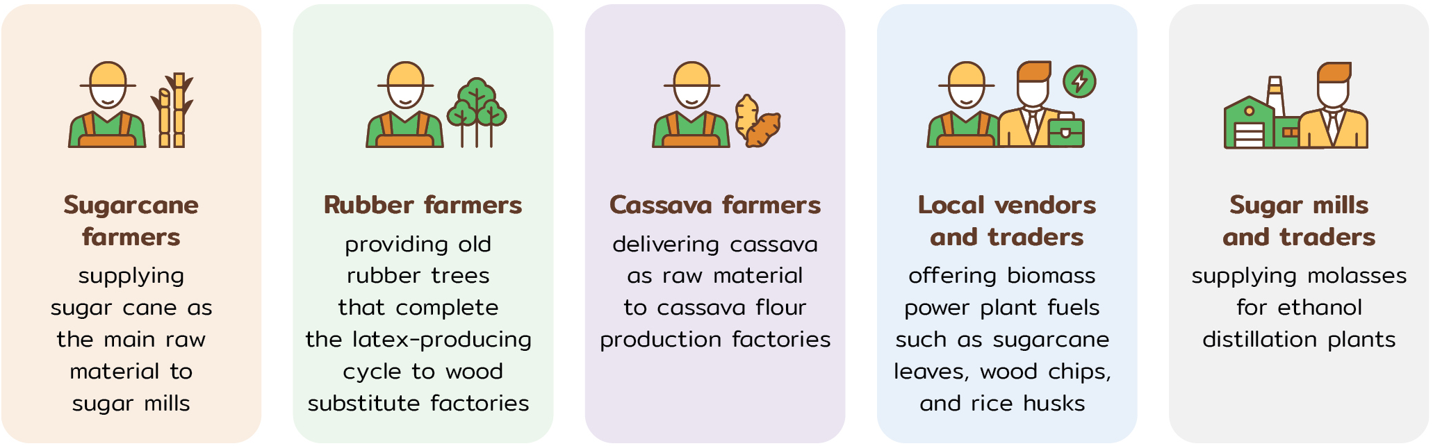 Mitr Phol's suppliers are classified based on their roles or the nature of the products and services they provide. This categorization ensures that each supplier group is managed appropriately and efficiently. Suppliers are divided into 2 main categories, central suppliers and raw material suppliers, as detailed below: