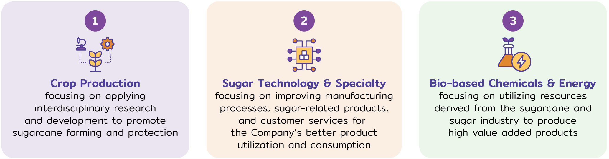 Mitr Phol Sugarcane Research Center Co., Ltd., a subsidiary of Mitr Phol Group, has been conducting research and development in sugarcane cultivation, sugar-related products and services, and the development of high-value products derived from byproducts of the sugarcane and sugar industry, to drive sustainable growth in the sector. Health product development is also one of the Company’s key missions, with research and development activities encompassing the following areas;