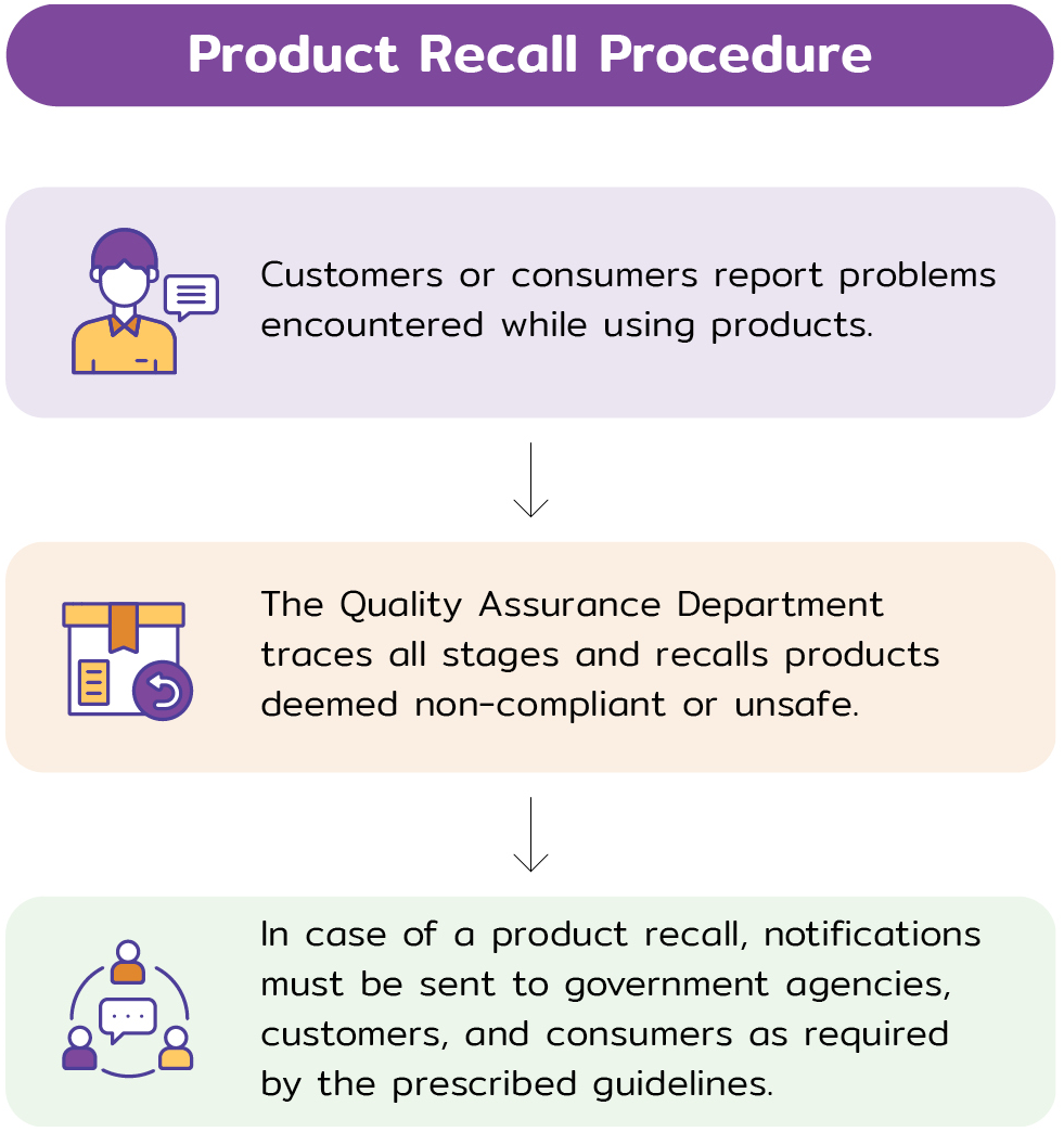Quality and safety are Mitr Phol’s top priorities; therefore, the Company has established a systematic and rigorous recall procedure to be implemented whenever a product is found to pose risks to quality or consumer safety.