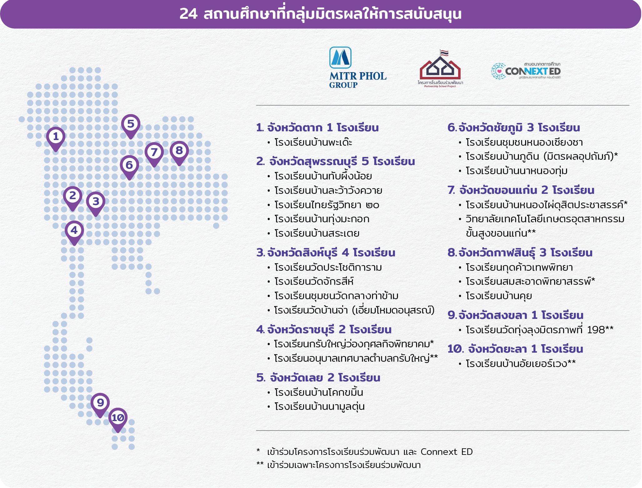 ชุมชนในพื้นที่ 9 จังหวัด ได้แก่ สุพรรณบุรี สิงห์บุรี ขอนแก่น กาฬสินธุ์ ชัยภูมิ เลย ร้อยเอ็ด ยโสธรและอำนาจเจริญ